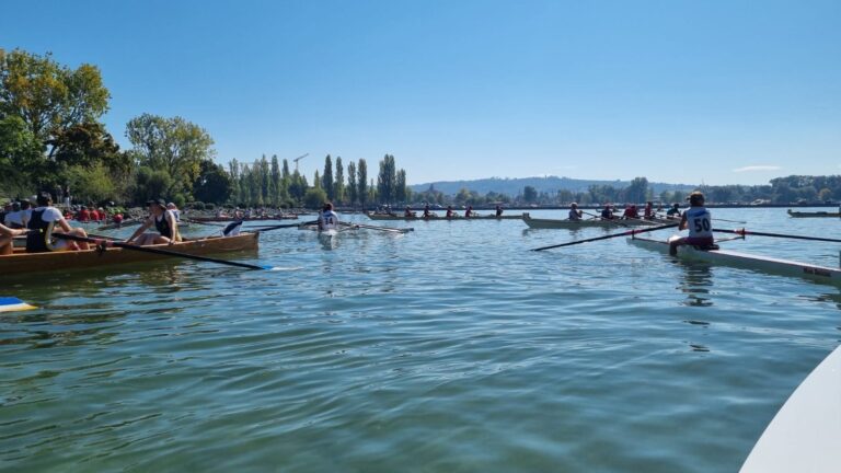 Am Samstag fuhren wir sehr früh los und waren schon kurz vor halb acht Uhr in Neuenburg am Start, zusammen mit Ruderinnen und Ruderern aus der ganzen Schweiz und auch aus umliegenden Ländern.