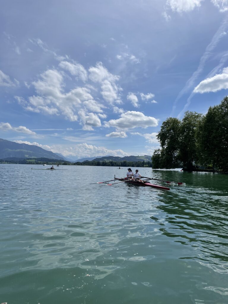 Das erste Rennen für den Seeclub Thun fuhr Levin Lauper im U19 Skiff. Er fuhr auf Platz 5. Weiter ging es mit unseren Juniorinnen U17 im Skiff: Nina Peter (Rang 5), Meret Wenger (Rang 2), Andrea Wenger (Rang 4) und Lara Hofstetter (Rang 4). Leider wurden wir am Sonntagmorgen mit starkem Wind und Regen auf dem Regattaplatz begrüsst, weshalb die ersten Rennen abgesagt werden mussten. Dies betraf sowohl den Skiff der Junioren U19 als auch den Skiff der Juniorinnen U17, weshalb wir am Sonntagmorgen viel Zeit hatten zum UNO spielen, Kaffee trinken und andere Rennen zu verfolgen (obwohl wir die Zeit natürlich fast lieber mit ausschlafen verbracht hätten 😉).