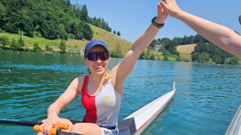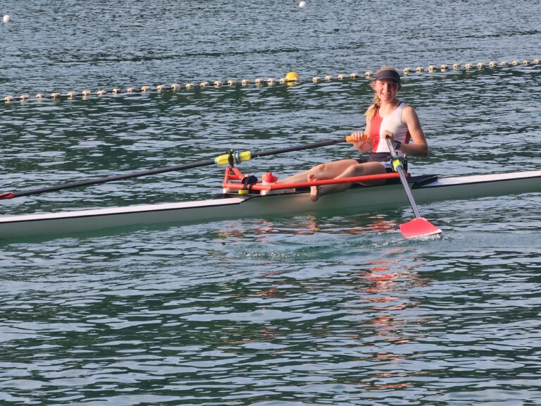 Für Meret hiess, den Fokus schnell wieder zu finden: Nur zwei Stunden später stand sie im U17 Skiff am Start. Sie konnte die Enttäuschung in positive Energie umwandeln und gewann ihren Vorlauf souverän und qualifizierte sich für das Halbfinale am Samstag. Dort lief es nicht optimal – Rang 6 bedeutete den Einzug ins B-Final. Am Sonntag zeigte Meret nochmals ihr Können und belegte mit einem starken Rennen den 2. Platz im B-Final. Sie ist somit in der U17 Skiff Kategorie die 8. Beste der Schweiz – herzliche Gratulation!