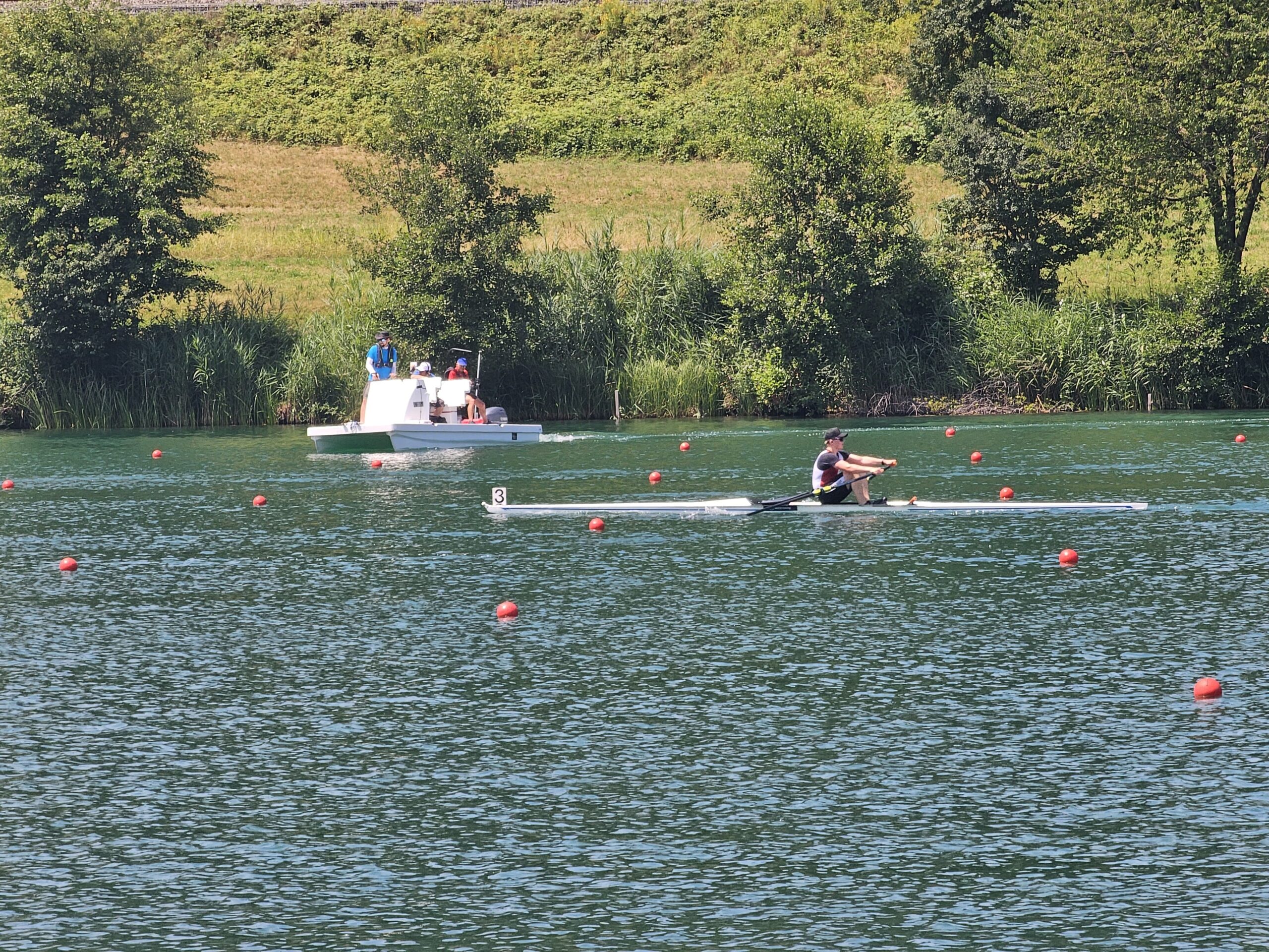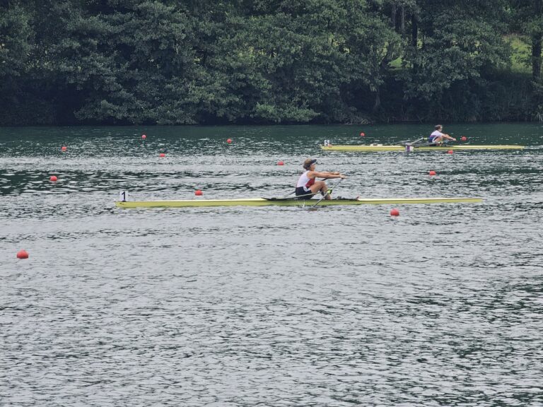 Im U19 Skiff war Levin L. in einem hochklassig besetzten Vorlauf am Start. Nur die ersten vier kamen weiter. Levin zeigte ein mutiges Rennen und lag zur Rennhälfte auf dem aussichtsreichen 4. Rang. Auf den zweiten 1000 Metern konnte er das Tempo nicht ganz halten und belegte am Ende Rang 5 – das bedeutete leider das Ausscheiden. Trotzdem ein mutiger Auftritt in einem sehr starken Feld.