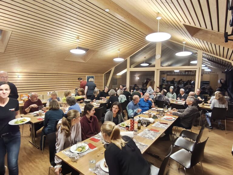 Nach der sportlichen Betätigung versammelten sich alle im Clubhaus, wo schon bald ein köstliches Fondue aufgetischt wurde. Wer danach noch Platz im Magen hatte, konnte sich am leckeren Dessertbuffet bedienen. Dazwischen fand eine Art Versteigerung für den neuen Namen von Vega II statt. Mit den meisten Stimmen machte das Rennen «Aarestern».