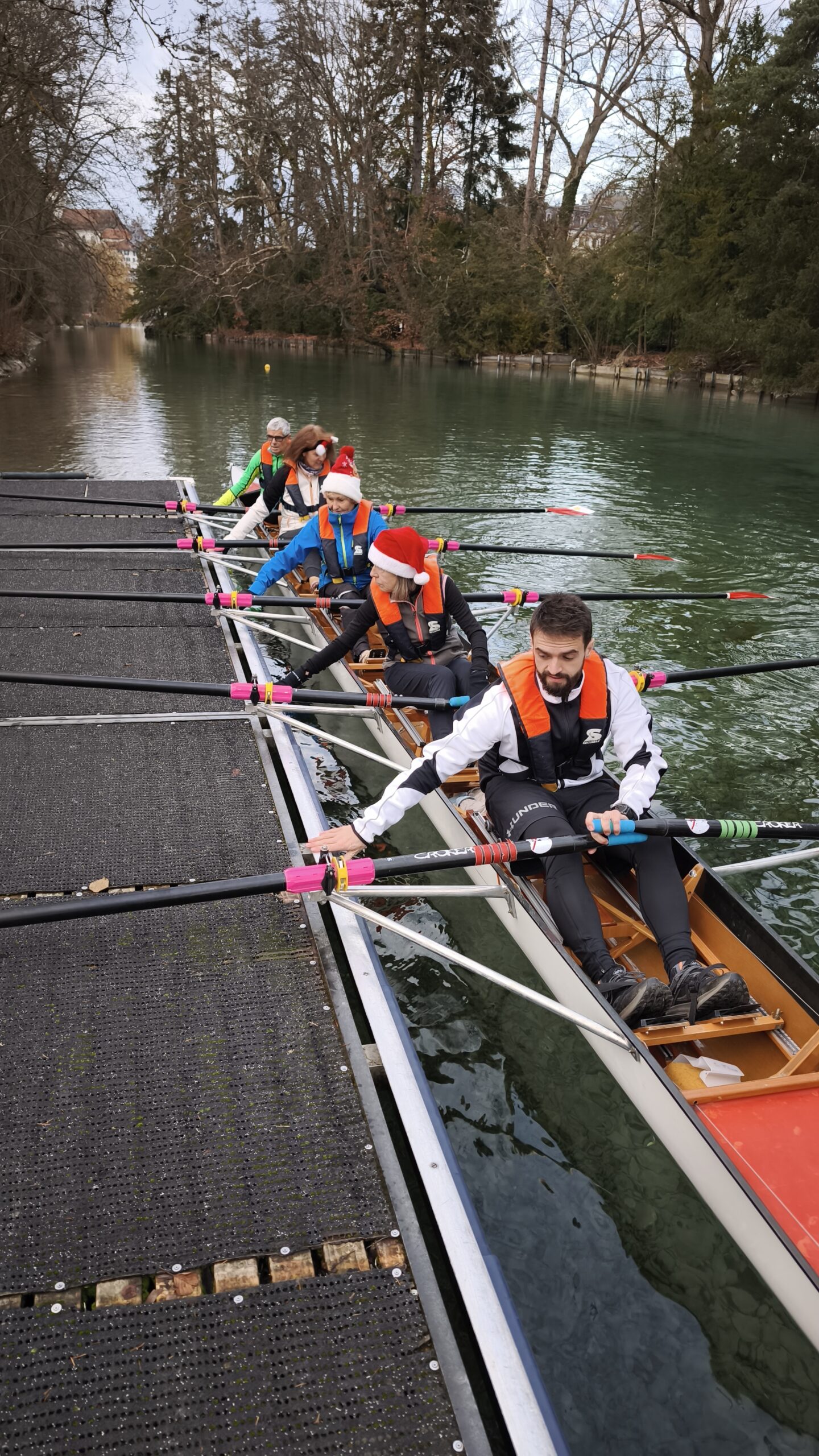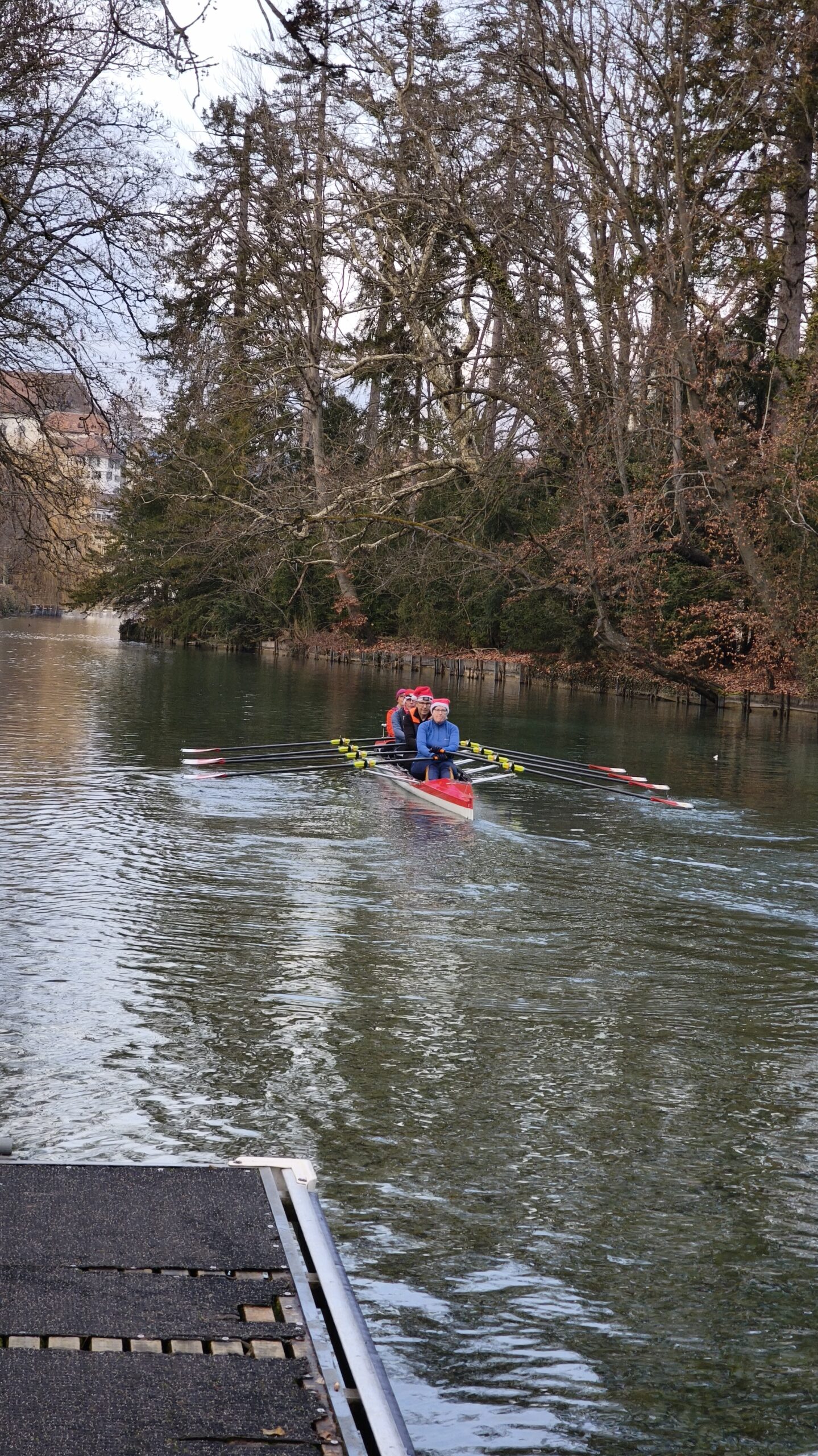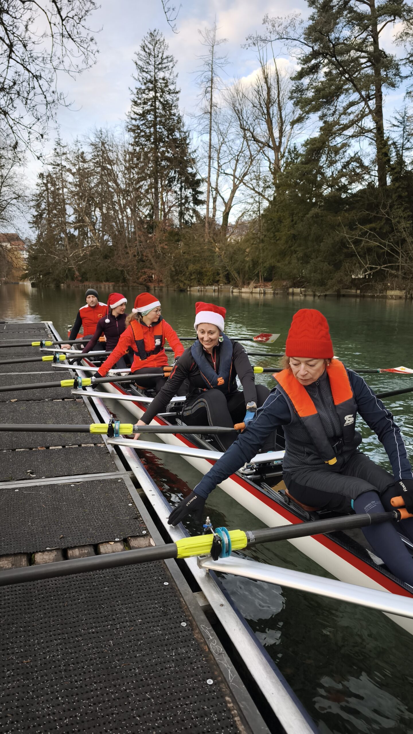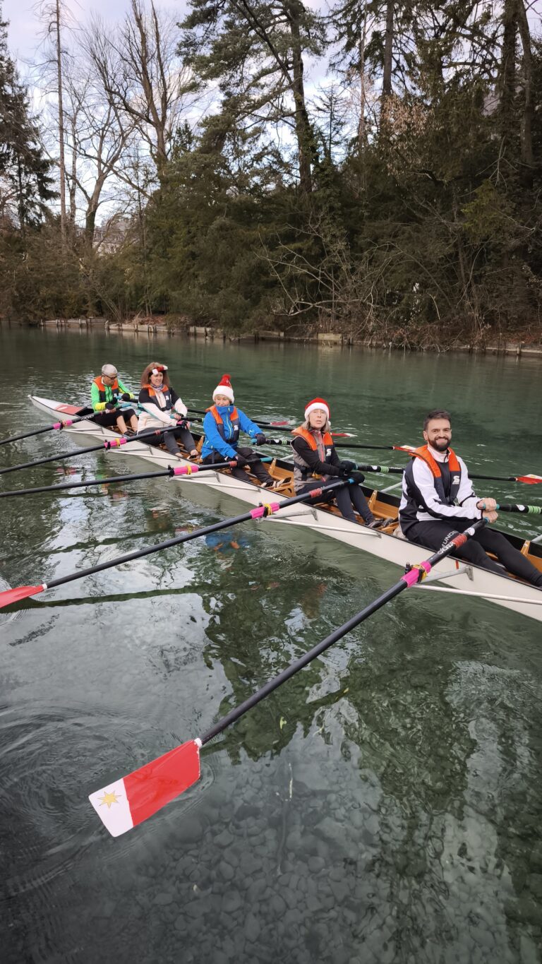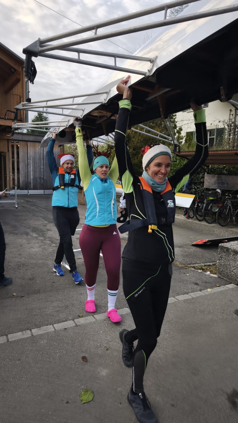 Bei iealen Wetterbedingungen und bester Laune machten sich die Teilnehmer mit insgesamt 9 Booten auf die Aare, um ein unvergessliches Weihnachtsrudern zu erleben.