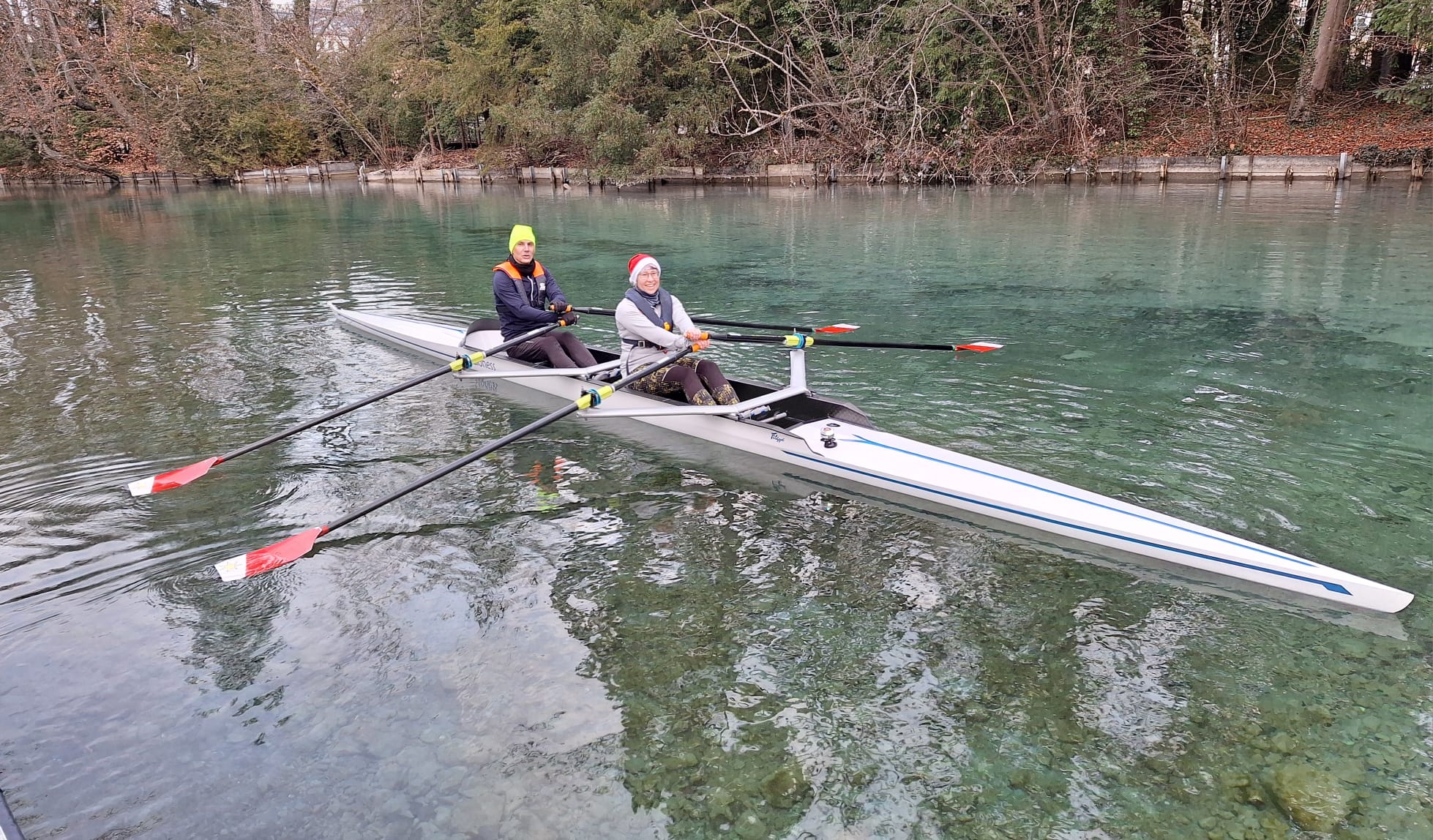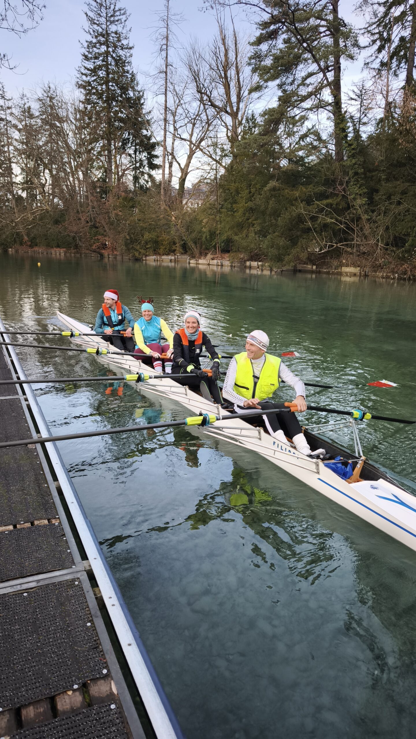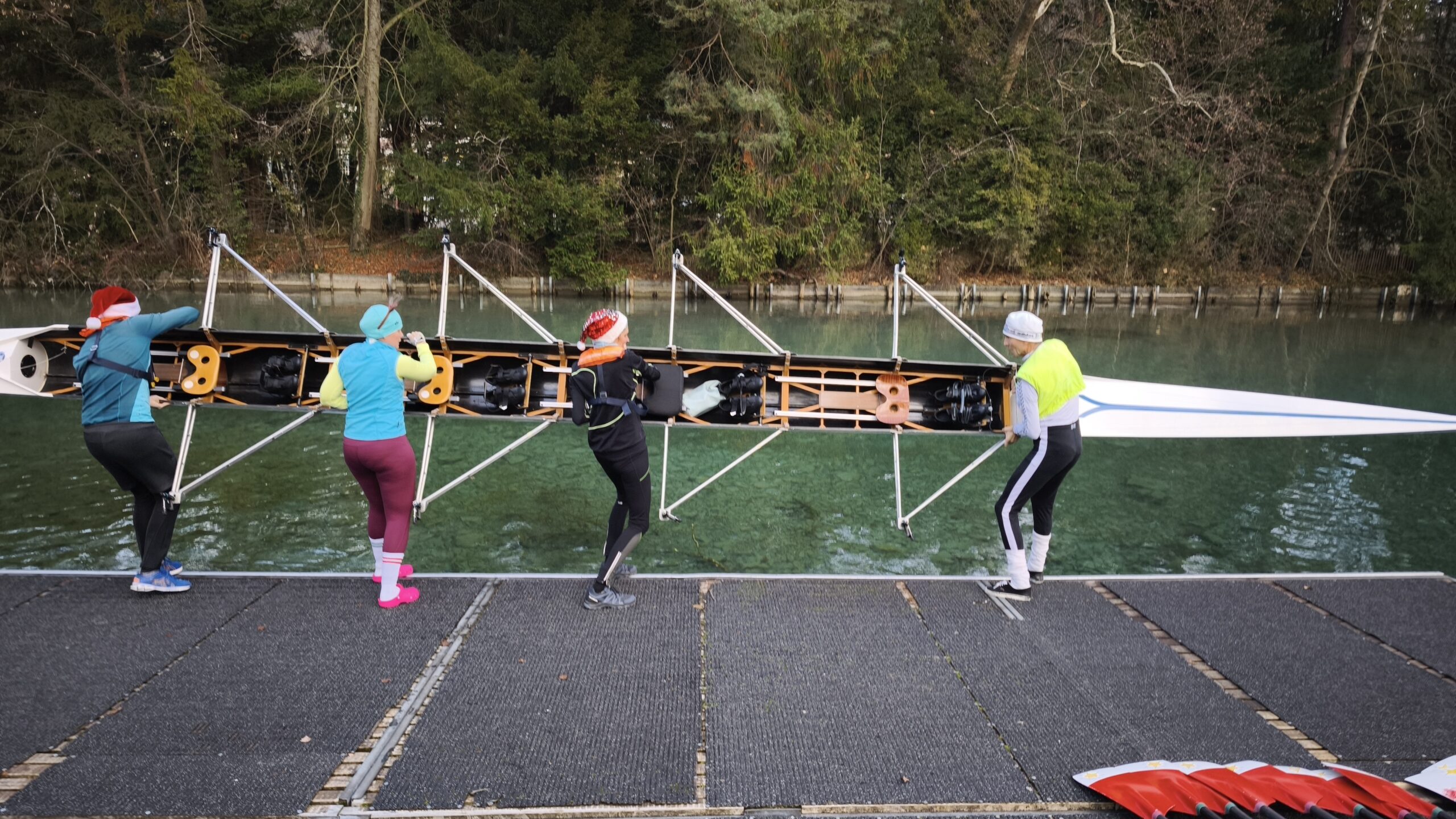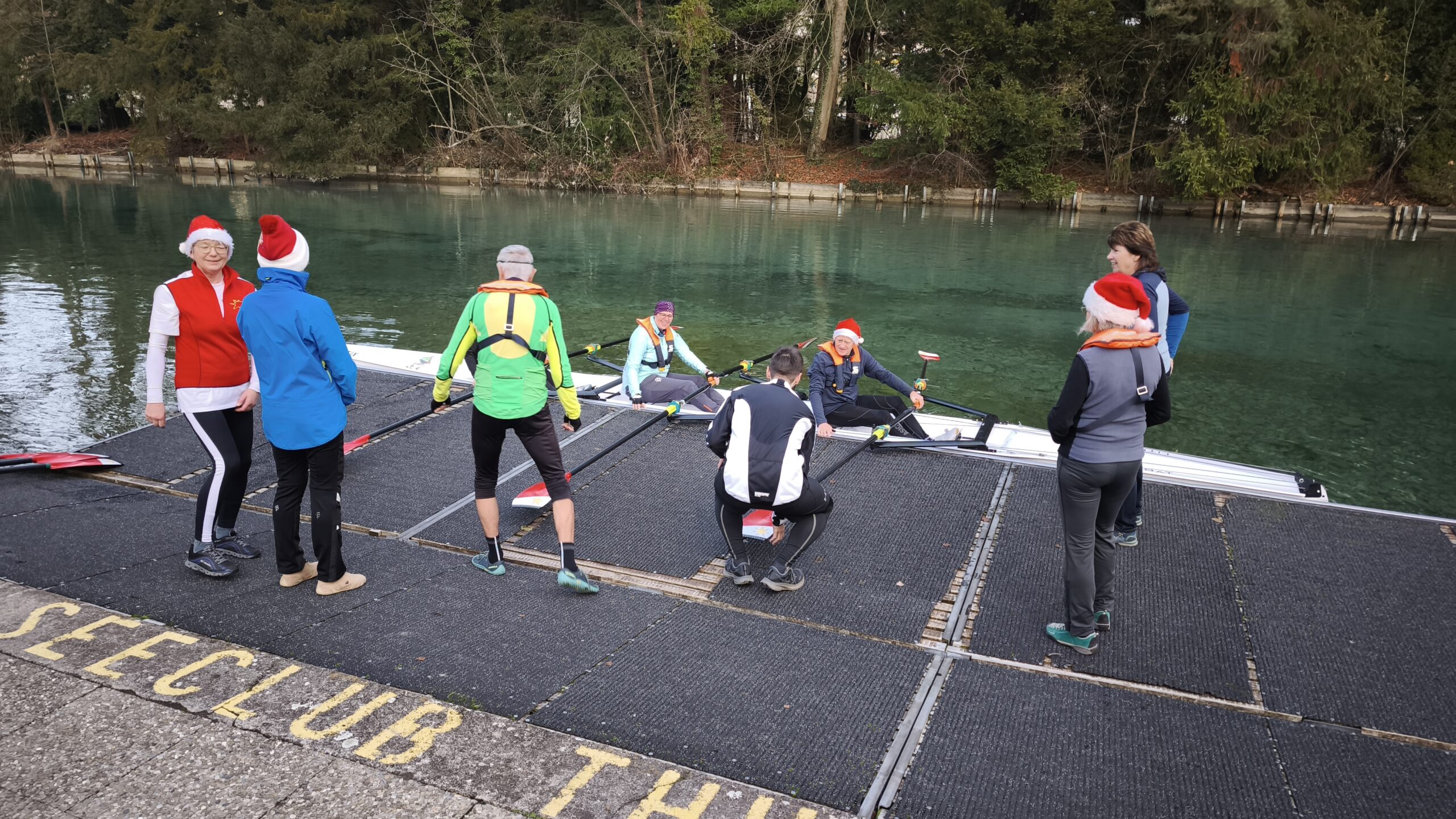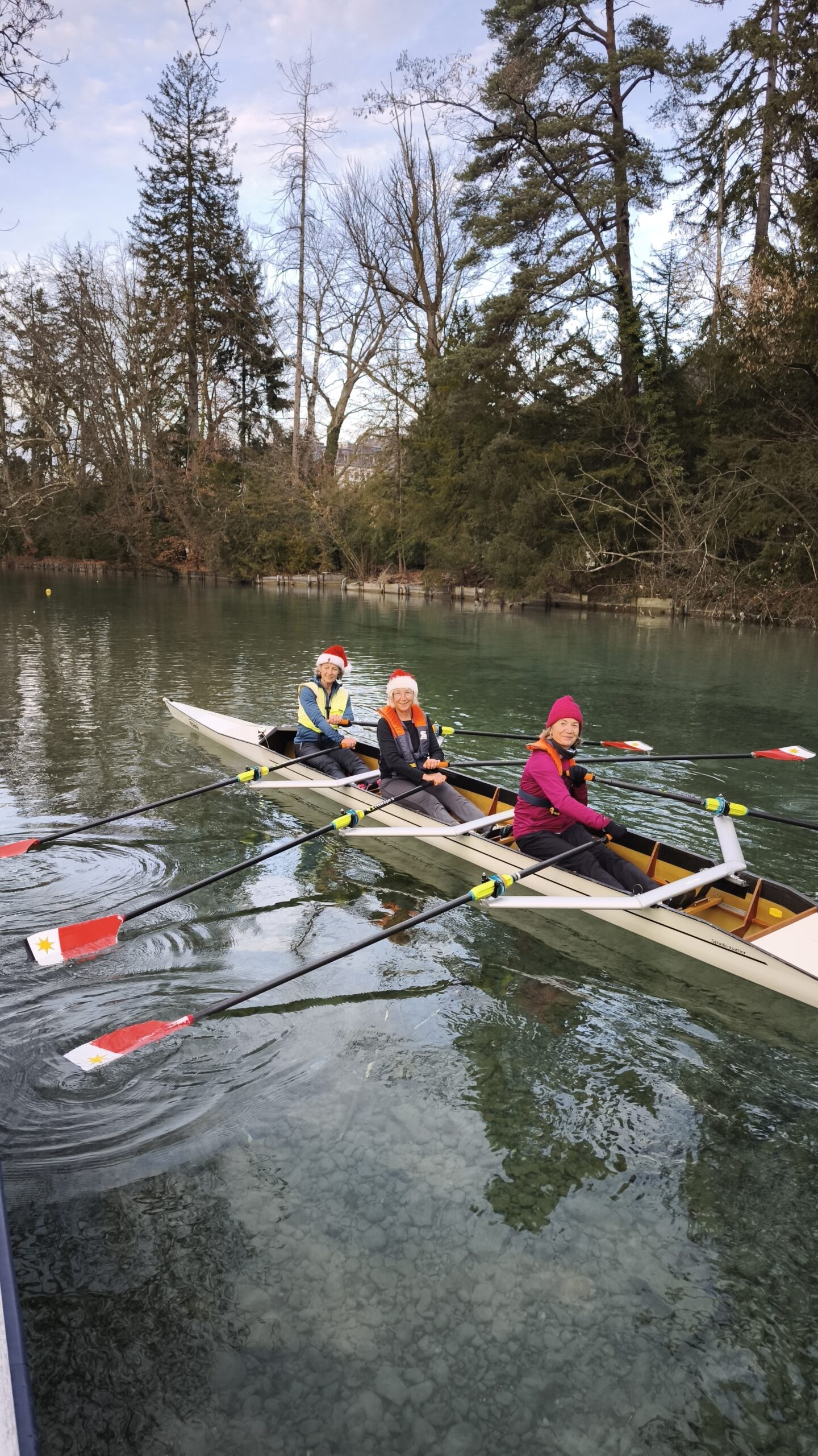 Bei iealen Wetterbedingungen und bester Laune machten sich die Teilnehmer mit insgesamt 9 Booten auf die Aare, um ein unvergessliches Weihnachtsrudern zu erleben.